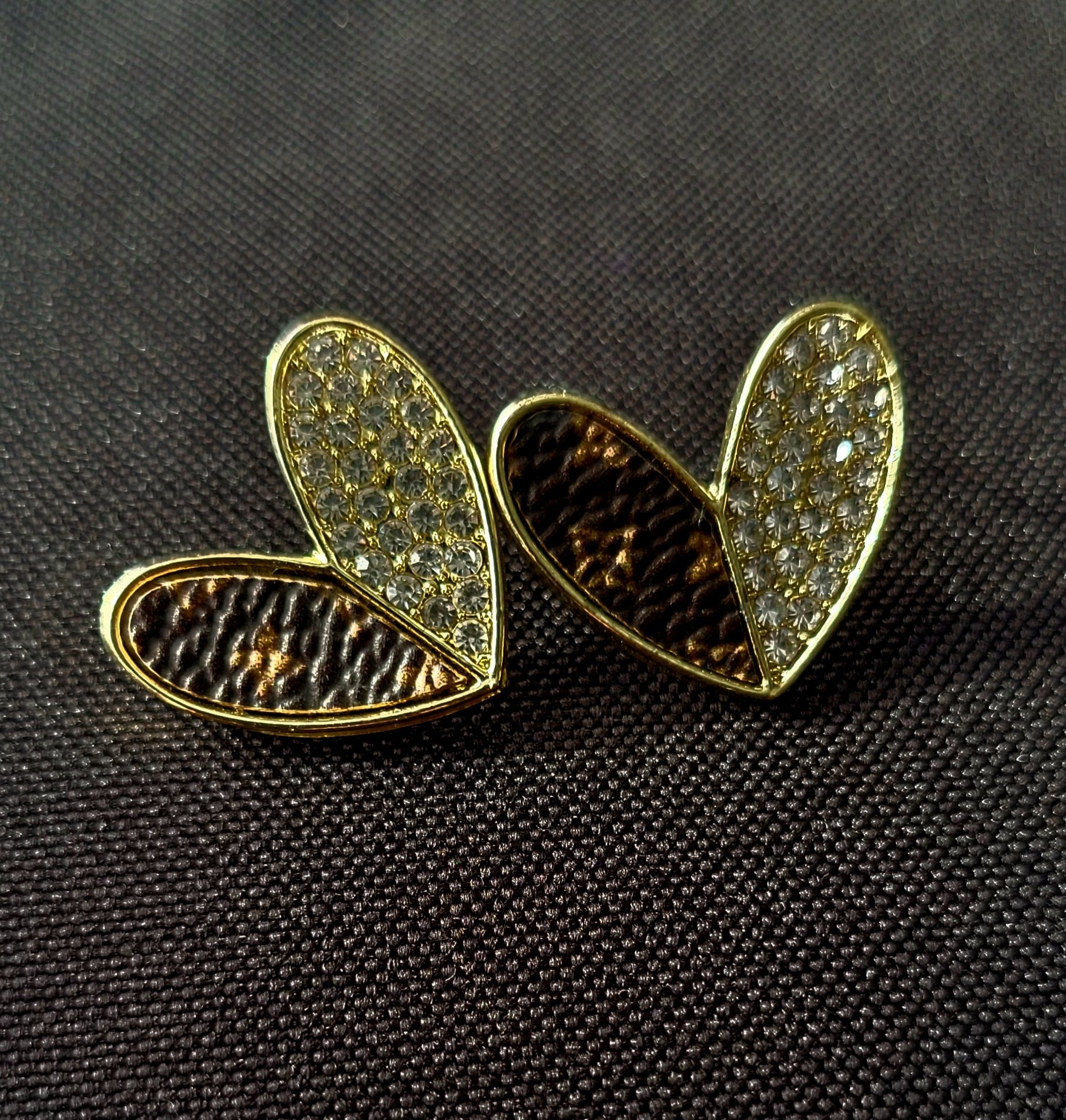 These heart shaped earrings feature a very recognizable, faux leather print on one half of the heart and cz encrusted on the other. Cute, lightweight yet more than enough to make a statement. It's a must have for yourself or as the perfect gift.